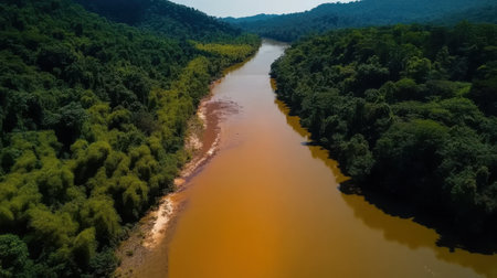 Aerial view of autumnal forest and mountain river. Beautiful nature landscape.