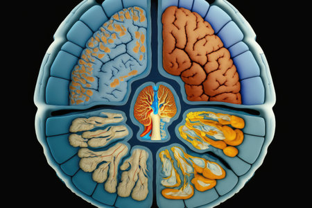brain functions, viewed from above, with different areas in view, created with generative ai