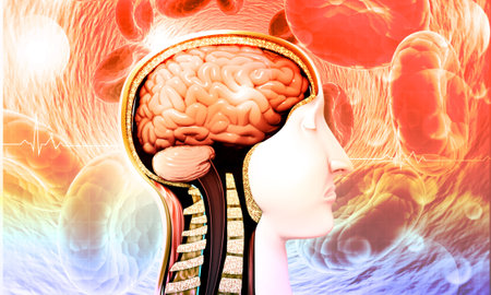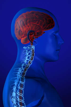 Human brain anatomy, 3D illustration. Human brain anatomy with nervous system