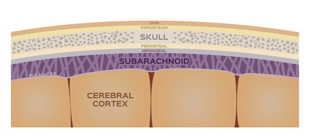 Cartoon meninges with cerebrospinal fluid