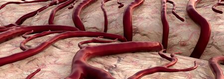 A brain with red veins and a background