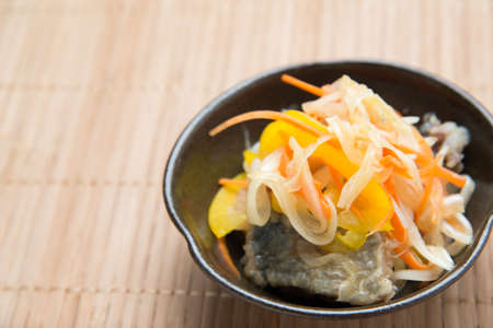 japanese food, nanbanzuke, marinated fried horse mackerel