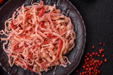 dried squid texture illustration snack tough, leathery sliced, seasoned spices dried squid texture