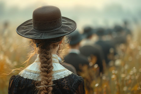 Portrayal of Amish people, traditional lifestyle, close bonds of community, rural simplicity, values of cultural richness, traditions of close-knit family friendly living group. village country life
