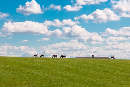Horses at horsefarm. Country landscape.