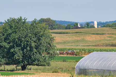 Amish country horse farm barn field agriculture in Lancaster, PA
