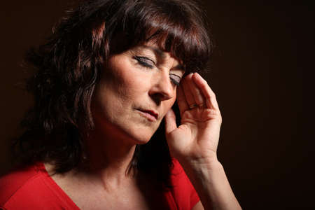 Beautiful serious mature woman pondering over something