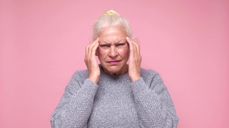 Elderly woman suffering from headache. High quality photo
