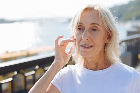 Close up of senior woman tidying up her hair