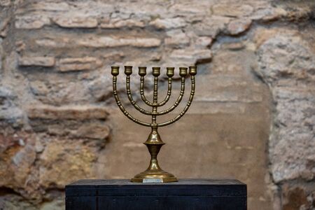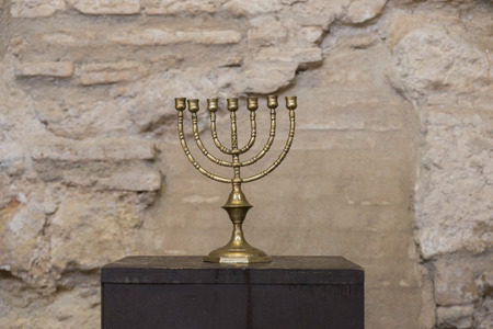 Jerusalem, Israel - April 2, 2019: Big Hanukkah Menorah in King Davids Tomb.