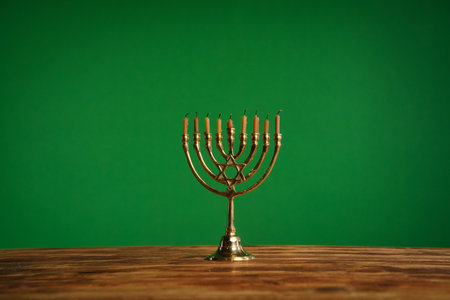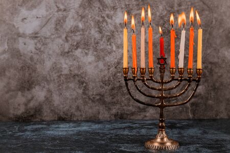 Jewish holiday hannukah symbols - menorah. Copy space background.