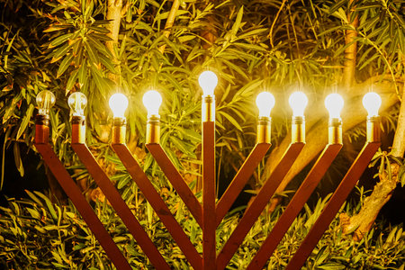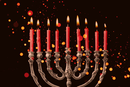 Hanukkah menorah orthodox jewish holiday symbol brightly glowing candles