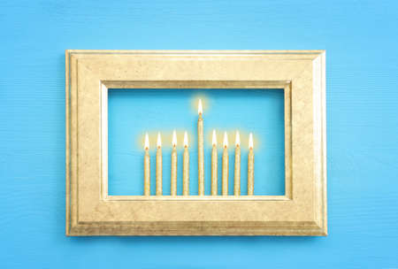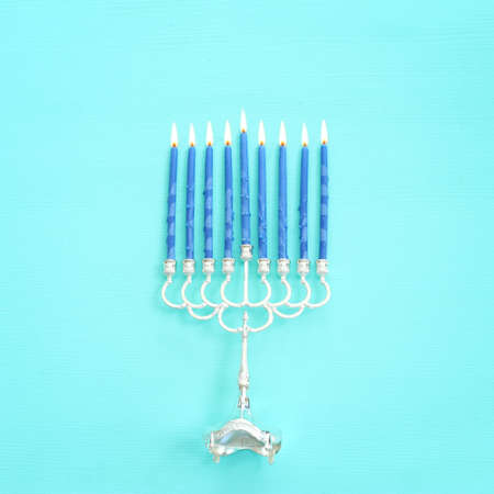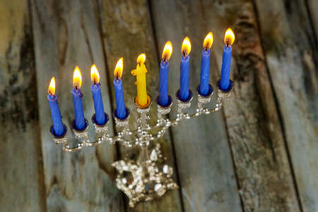 Image of jewish holiday Hanukkah with menorah (traditional candelabra) and candles