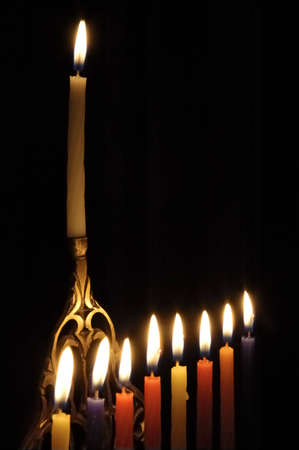 Image of jewish holiday Hanukkah with candles as menorah (traditional candelabra)