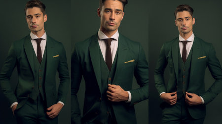Portrait of a confident businessman wearing an elegant suit in a tailor shop, showcasing confidence and style