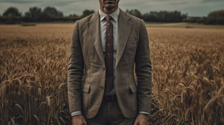 a man in a suit in a field of wheat