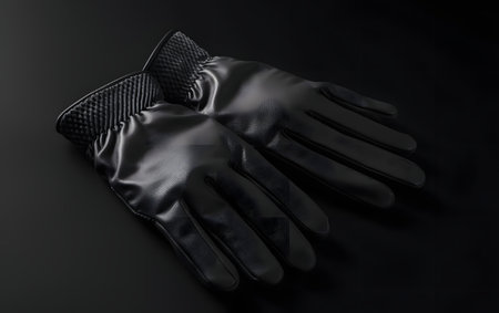 A stylish black leather glove rests elegantly on a dark textured surface, showcasing its sleek design and quality, perfect for winter fashion and accessory photography.