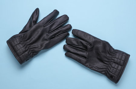 Black leather gloves on a blue background