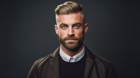 A Stylish man with trendy haircut and blue eyes, smiling confidently