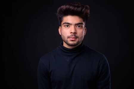 Portrait of a Fashionable Young Male Model Posing for a Sleek and Sophisticated Headshot in a Minimalist Studio Setting