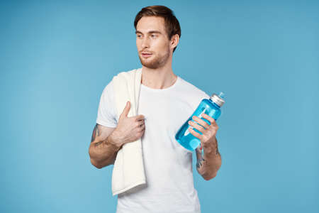 handsome young man in blue t-shirts with a pumped-up body Lifestyle unaltered