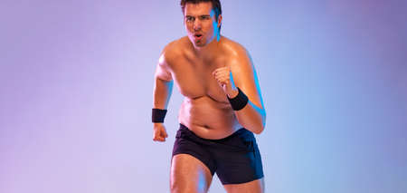 Fat man jogging to lose weight and become a slim athlete. Running sport man.