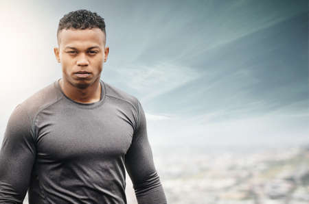 Get out there and get fit. Portrait of a sporty young man exercising outdoors.