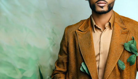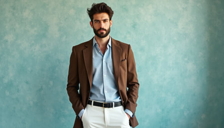 Stylish man in a brown blazer against a textured blue background