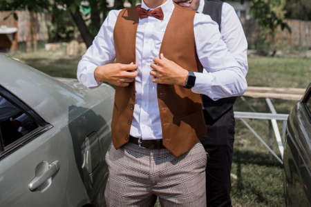handsome man in formalwear dressing and grooming, fashion