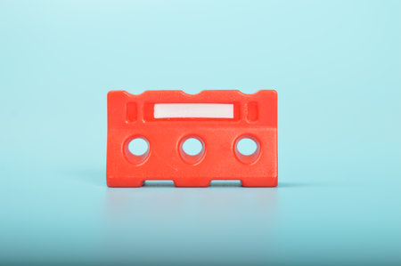 Red safety barricade isolated on a blue background