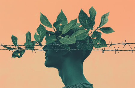 Man with green plants and barbed wire nature and conflict in the modern world