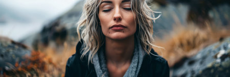 A masterful photograph depicts a person sitting in profound meditation in the heart of a tranquil wilderness Every intricate detail of nature from the delicate ripple of a nearby lake to the vibrant hues of foliage comes to life embracing the essence of mindfulness and connection to nature within the frame capture the profound stillness the gentle whispers of leaves and the tranquil aura that encapsulates the scene inviting viewers into a moment of peaceful introspection Let the photograph inspire a deep sense of calm unlocking the power of mindfulness and promoting mental wellbeing