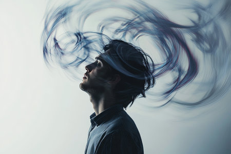 A person trapped in a never-ending cycle of thoughts, represented by swirling patterns and colors. Generative AI