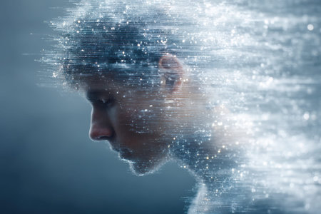 Abstract representation of a human silhouette with digital noise effects illustrating mental overload