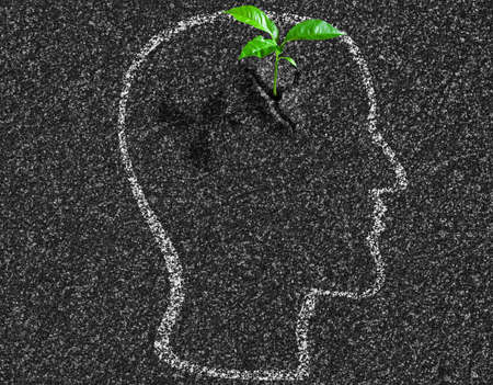 idea young growth inside of human head contour on asphalt concept