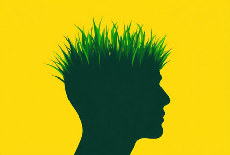 A creative and symbolic representation of a human head silhouette formed entirely from green grass, suggesting themes of nature, environment, and human connection.