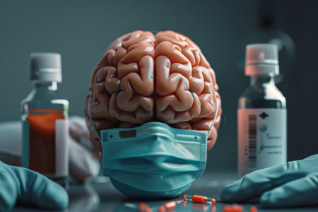 The brain, wearing a surgical mask, symbolizes the intersection of health and science