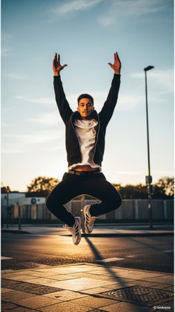 Capturing the Leap: Stunning 3:2 AR Photo of an Acrobatic Person in Mid-Air!