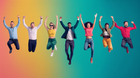 Energetic collage of diverse individuals celebrating life in vibrant colors