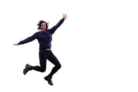 Happy and Excited Girl Jumping with Joy. Isolated on White Background.