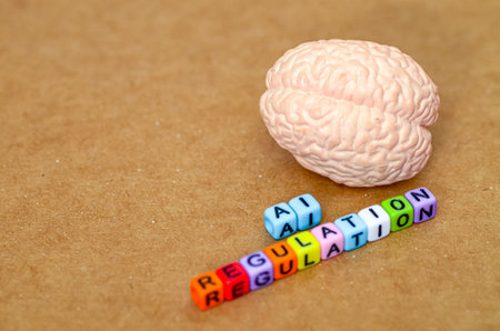 The Human Element in AI Regulation: A brain model above the text AI REGULATION symbolizes the human-centric approach to governing artificial intelligence.