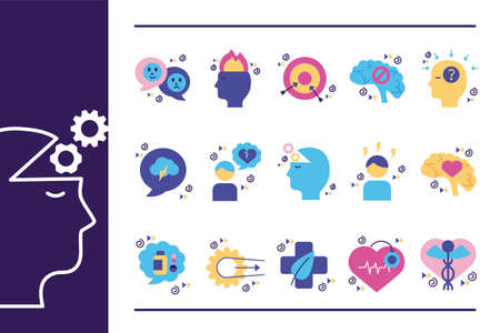 Paper heads and disorder brain, world mental health day, Alzheimer and Psychology concept