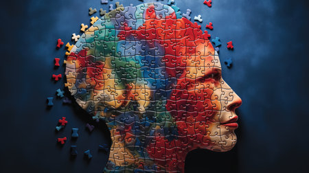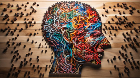 mental health symbol made of interlocking puzzle pieces, representing the complexity and uniqueness of each persons mental health, created with generative ai