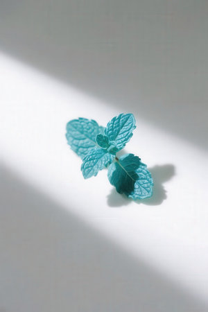 Pepper mint leaves on a white background with shadow from a window