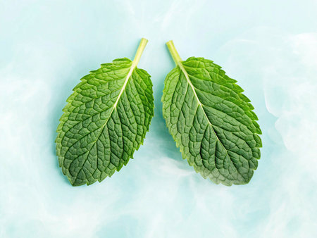 fresh mint leaves on blue background