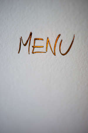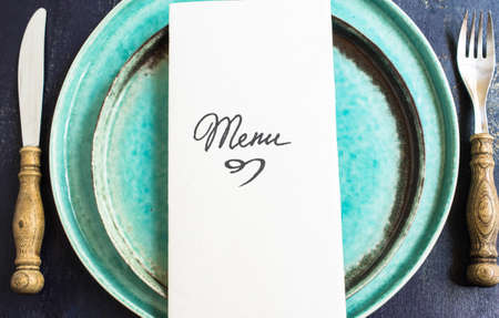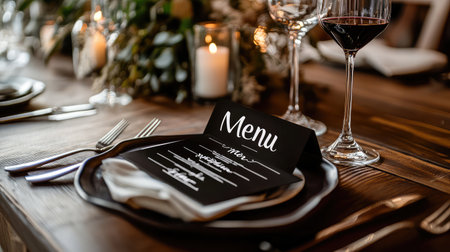 Menu, plate and cutlery on a beautifully served festive table in a restaurant