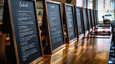 A stylish menu frame displaying variety of dishes in cozy restaurant setting, inviting customers to explore delicious options