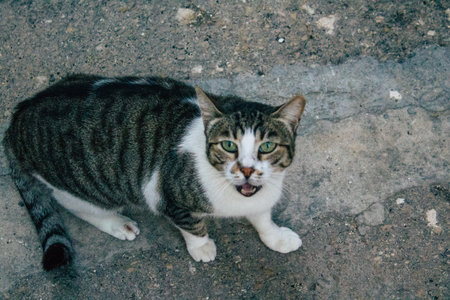 Tel Aviv Israel December 21, 2020 View of abandoned domestic cat living in the streets of Tel Aviv during the city lockdown and the coronavirus outbreak in Israel