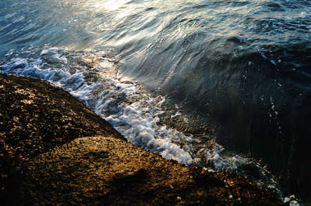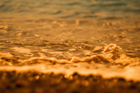 Sea waves and ripples at sunset background