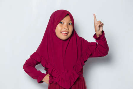 asian muslim little girl thinks idea isolated on white background